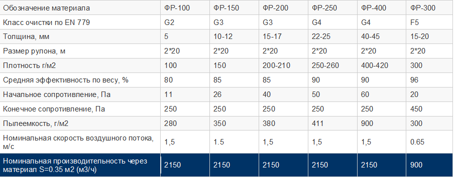 Фильтрующие материалы для вентиляции производят преимущественно из полиэстера высокого качества, при этом рулонный фильтр из полиэстера может иметь различную толщину рулонов.