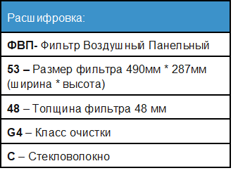 Тип фильтра: Панельный фильтр