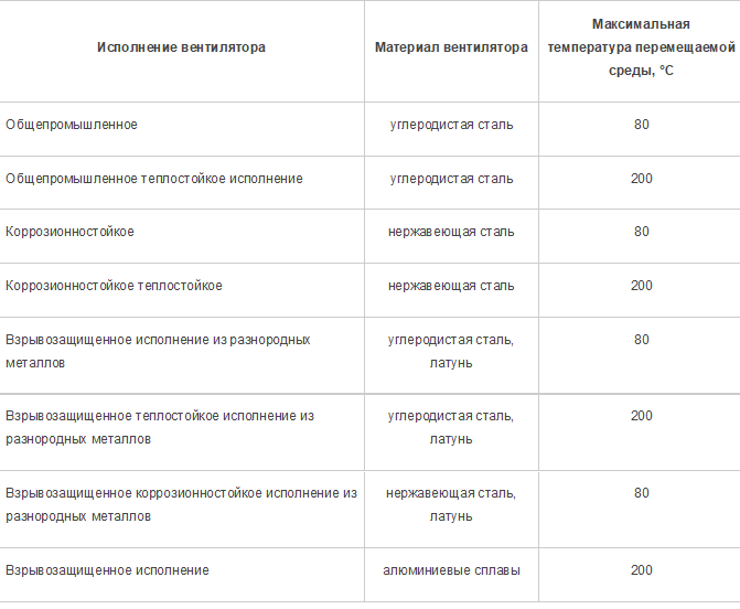 ВР 80-75 - (сюда относятся также серии ВЦ 4-70, ВР 86-77 и другие многочисленные серии моделей низкого давления. В частности, серия ВР 80-75 выполнена из углеродистой стали и предназначается для транспортировки неагрессивных масс воздуха или газов. Серия ВР 80-75 используется для особых условий, допускающих перемещение неагрессивных сред с температурой, не превышающей 80°С, и нормой запыленности не выше 100мг/м3, при этом транспортируемые газы и воздух не должны включать волокнистых и прилипающих веществ.Взрывозащищенные центробежные вентиляторы ВР выполняются из разнородных металлов и используются для работы с взрывоопасными смесями воздуха, паров и газов с температурой не выше нормы – 80°С. Такие модели нельзя применять для перемещения сред с взрывоопасными веществами под избыточным давлением или с температурой, превышающей температуру их самовозгорания.