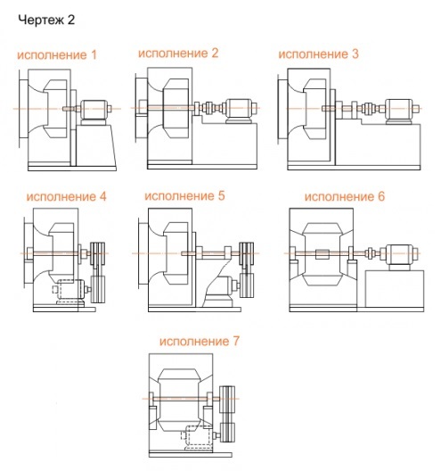 4. В зависимости от расположения привода различают 7 конструктивных исполнений (чертеж №2):