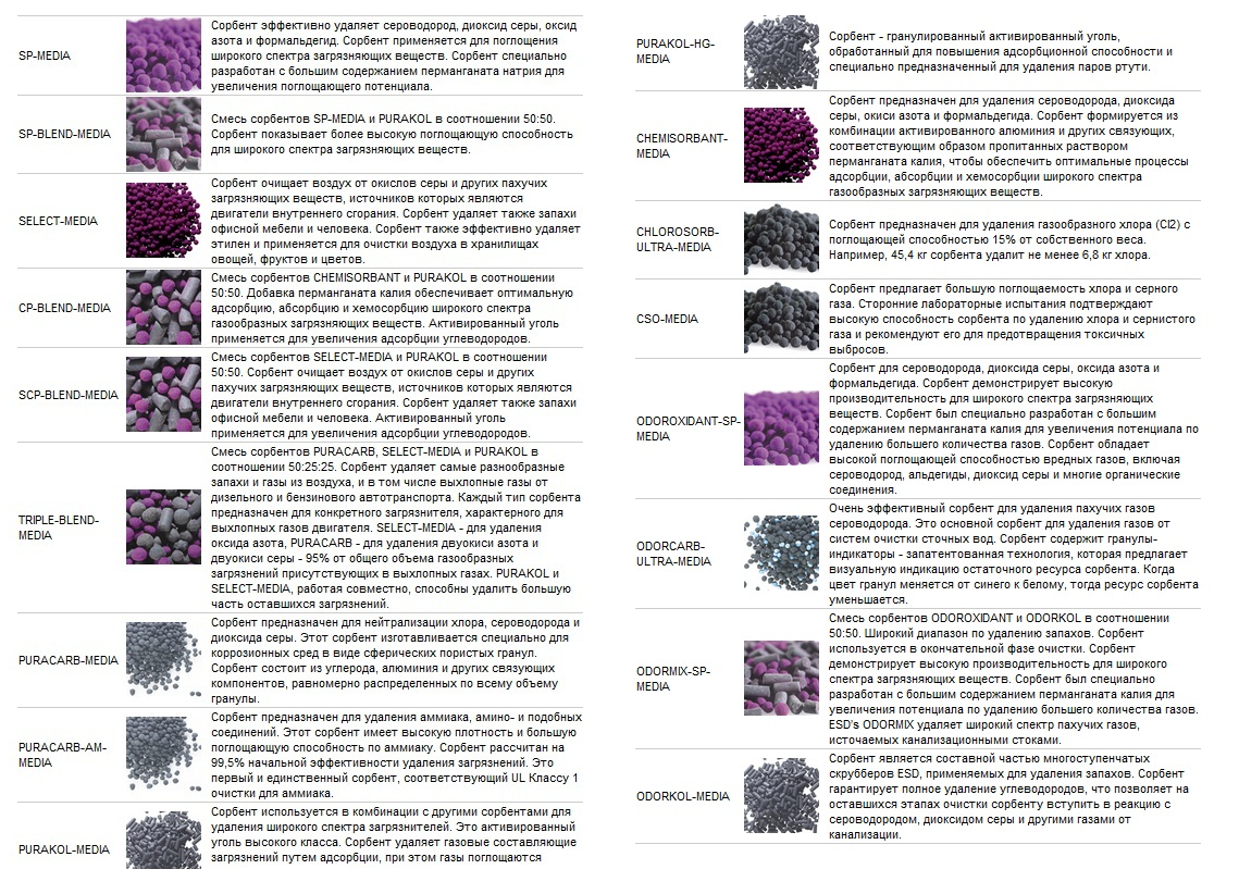 Индивидуальный подход позволяет значительно экономить средства Заказчика на фильтрующие элементы. Ниже представлены некоторые из стандартных сорбентов и их смесей.